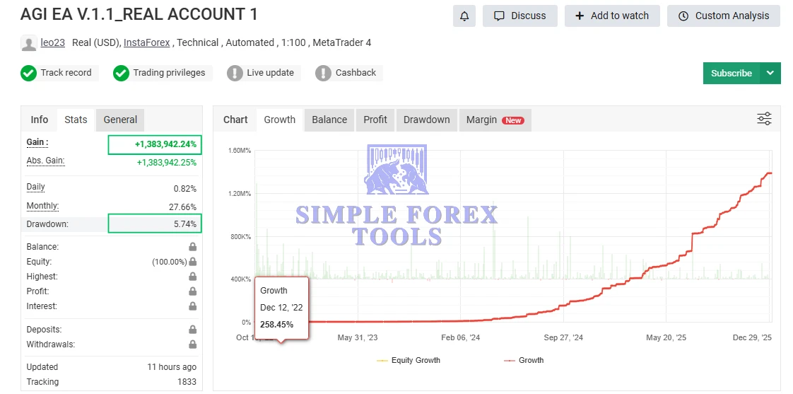 AGI EA MT4 V1.1 + V2 – AI Self-Learning Forex Robot (+1,383,942% Growth)