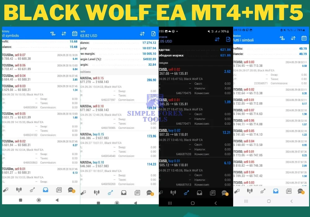 Black Wolf EA MT4 MT5 is a professional automated forex trading robot developed for MetaTrader 4 and MetaTrader 5 platforms. It is built around a trend-following trading strategy, allowing the EA to identify strong market directions and execute trades automatically based on confirmed trend signals.