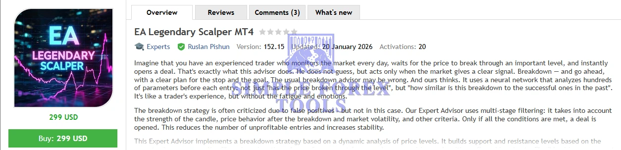 EA Legendary Scalper MT4 is an automated breakout scalping Expert Advisor for MetaTrader 4 that uses neural filtering and adaptive risk logic to take high-probability trades in volatile markets. -