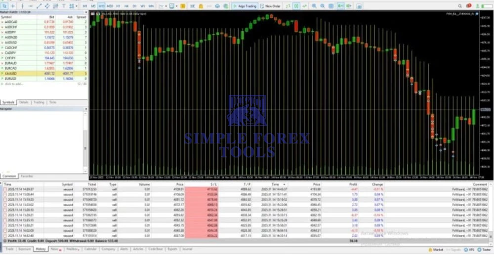 FX Wizard EA MT5 is a fully automated gold trading robot designed for XAUUSD on MetaTrader 5. It uses structured market logic, adaptive risk control, and fixed stop-loss and take-profit levels to deliver stable and controlled long-term performance without martingale or grid strategies.