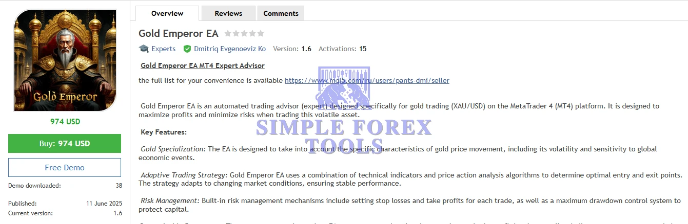 Gold Emperor EA MT4 is developed by Dmitriq Evgenoeviz Ko, a professional MQL5 developer with over 4 years of experience in algorithmic trading.