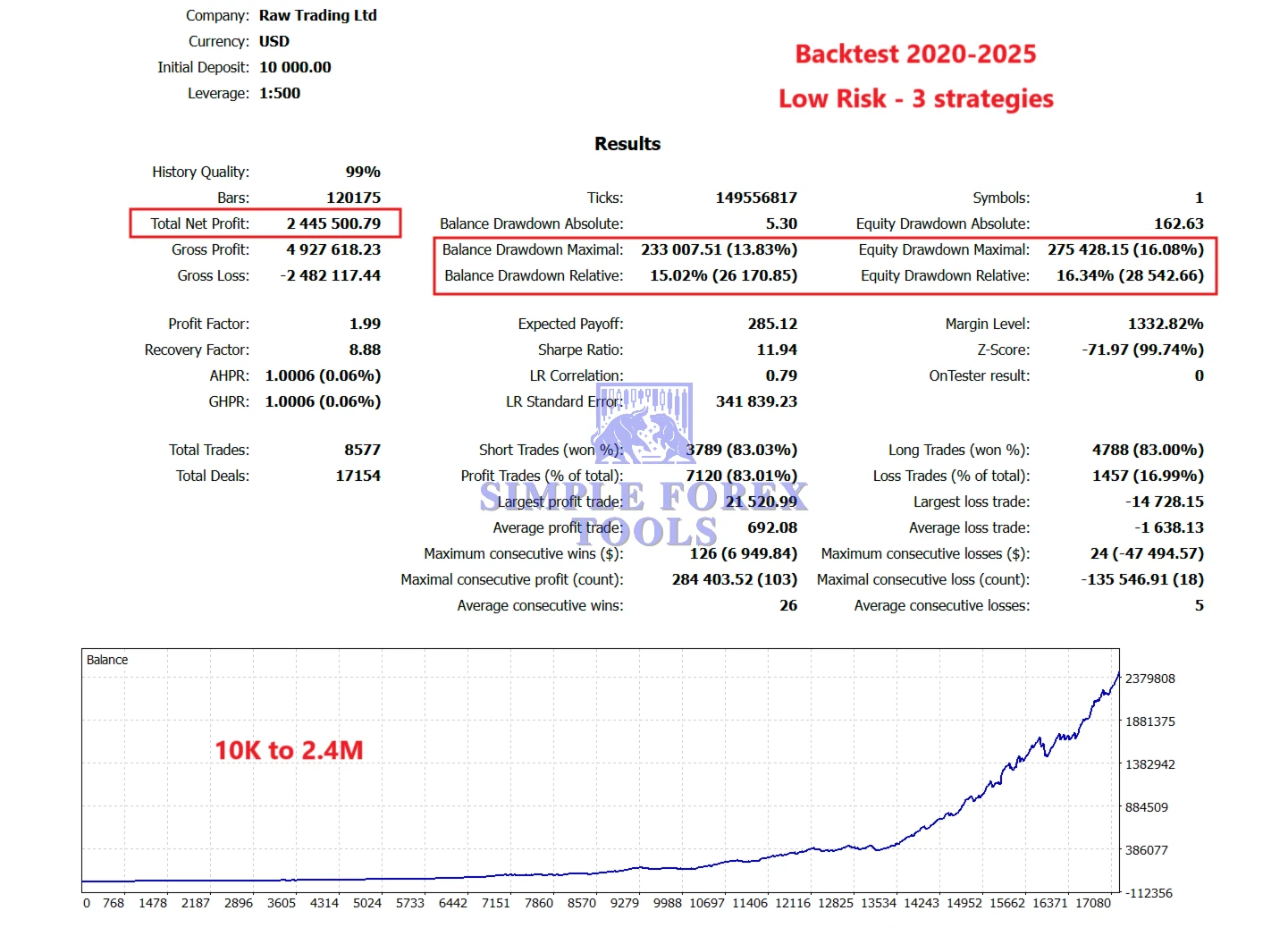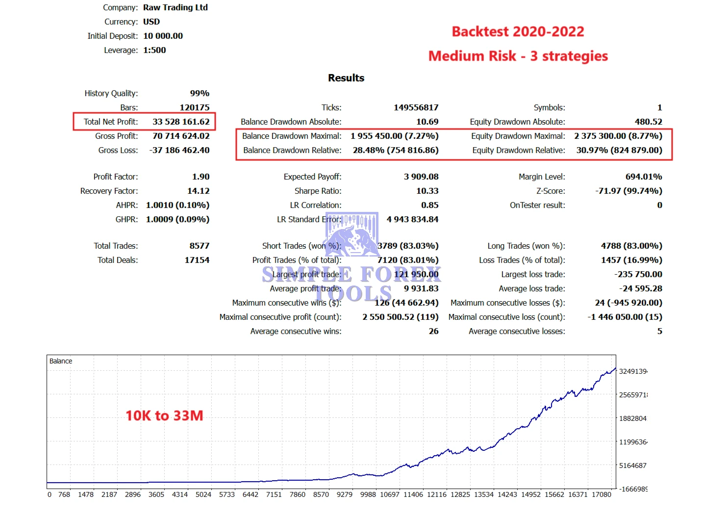 Gold ISIS EA has shown remarkable performance in both back testing and live trading environments. Starting from a $10,000 deposit, the EA achieved a simulated net profit of $33.5 million, demonstrating its powerful trading structure.