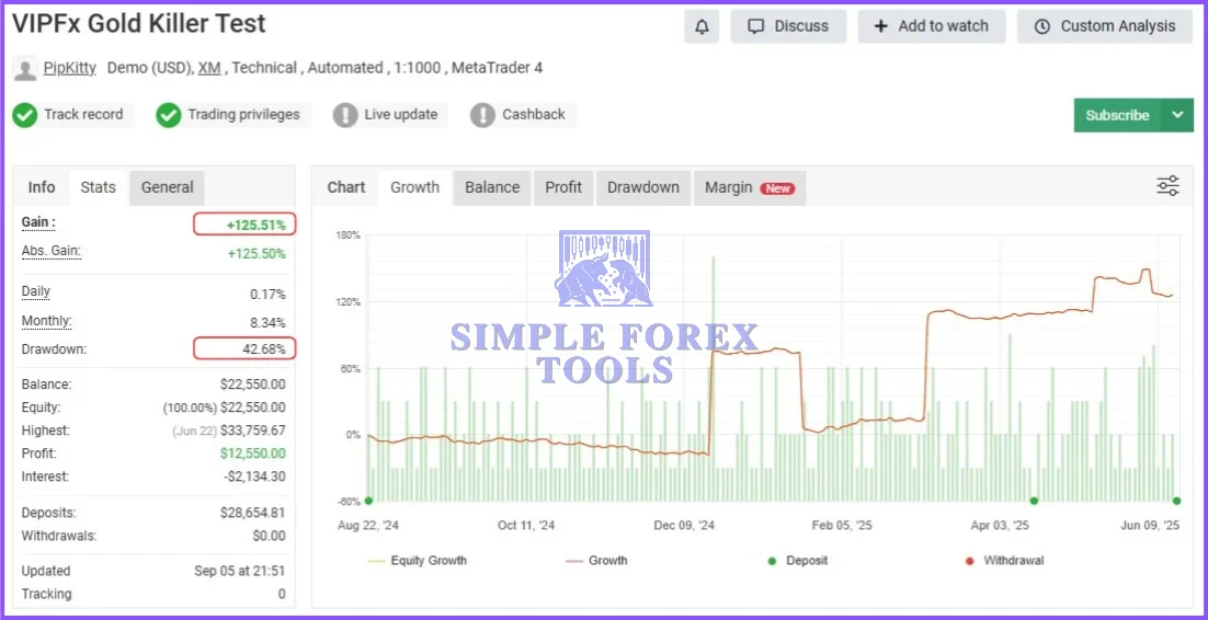 2. Is there verified proof of its performance? Yes. The Gold Killer EA has multiple verified Myfxbook accounts showcasing real-world results, ranging from stable, low-drawdown growth to more aggressive profit profiles.