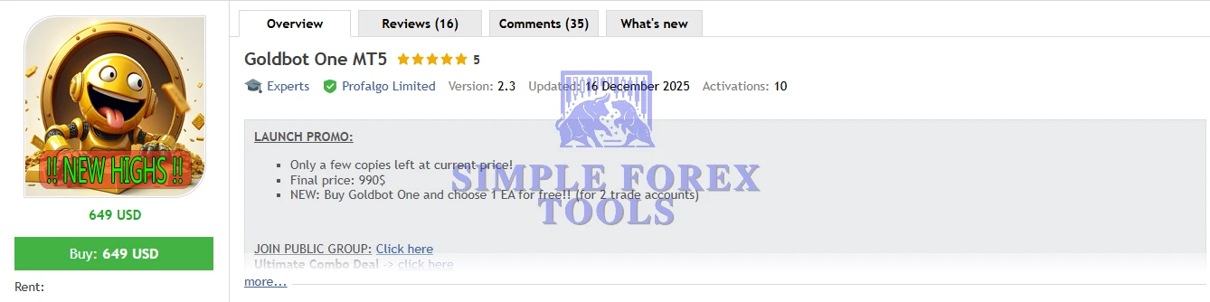 Goldbot One MT5 - Latest Version | Original License Key | Group Buy