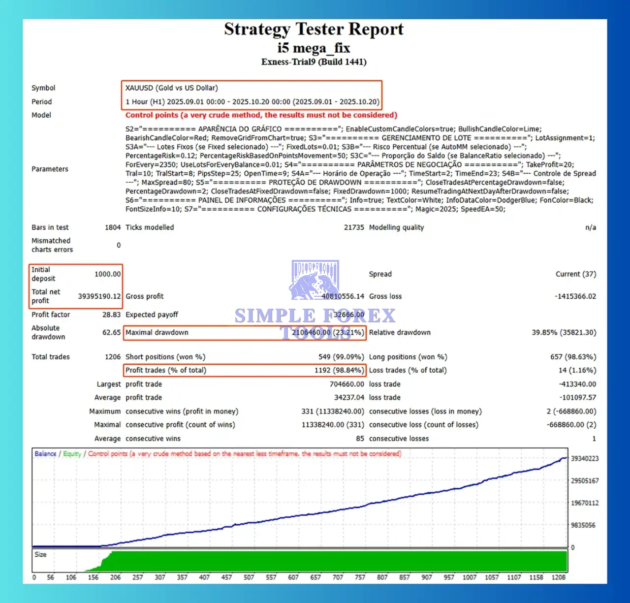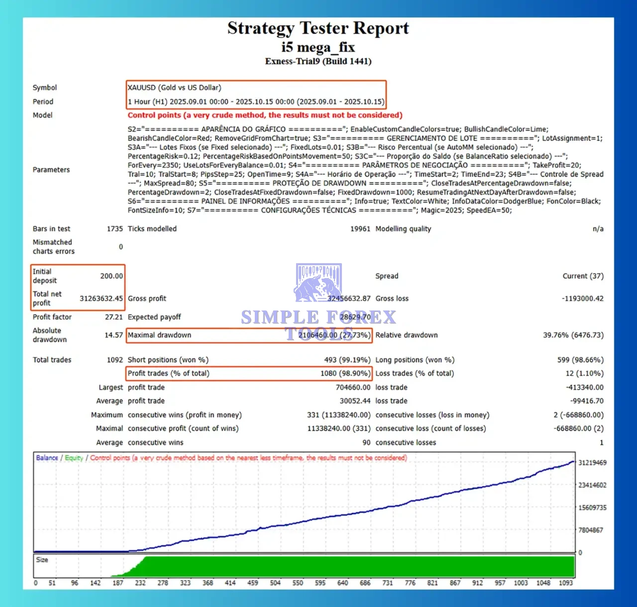 The I5 Mega EA MT4 has demonstrated impressive performance in backtesting, especially on XAUUSD (Gold).