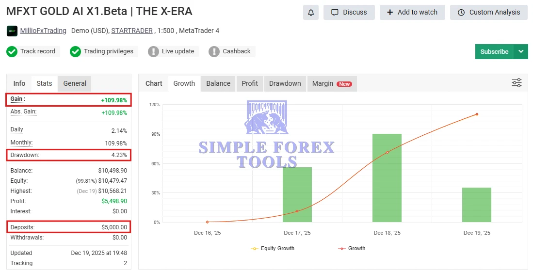 MFXT GOLD AI BOT MYFXBook Verified Review 1 | Check Live