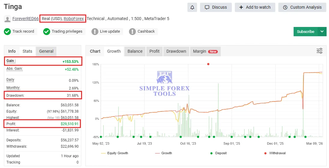 Tinga Tinga Robot MT4 MYFXBook Verified Review | Check Live