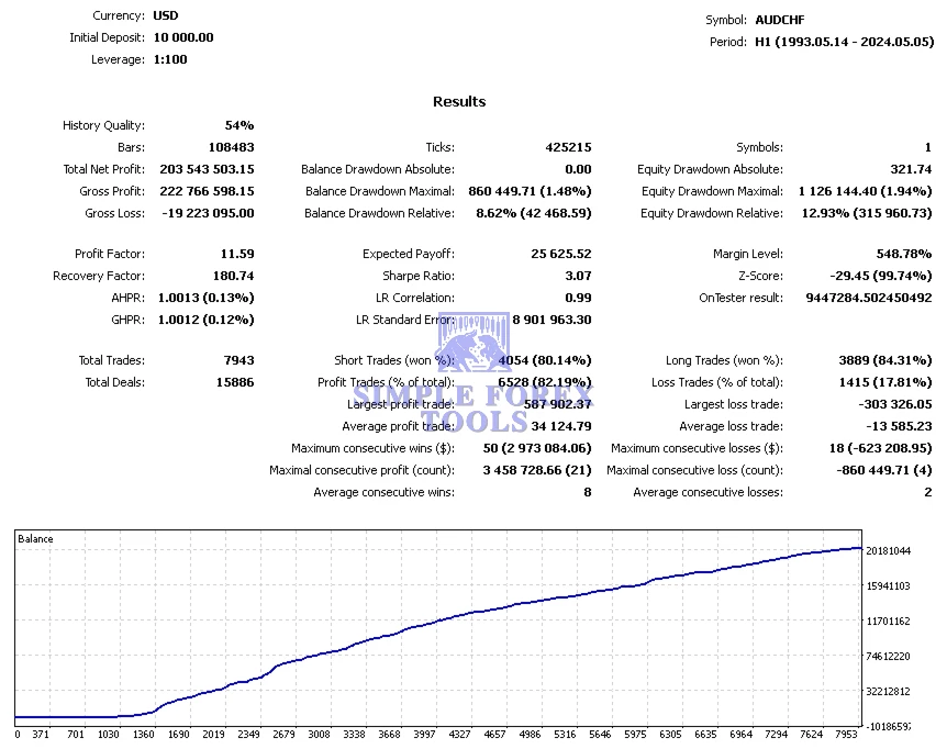 📌 Long-Term Backtest – AUDCHF (31 Years)