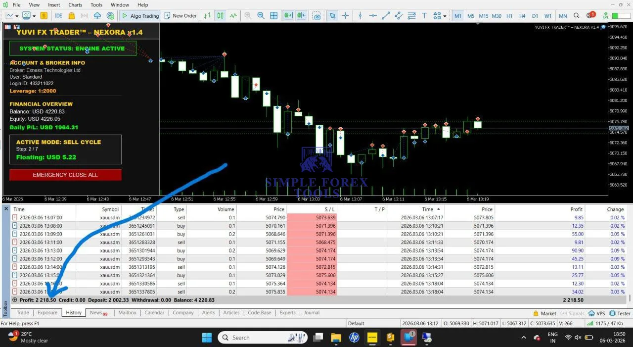 Yuvi Nexora EA MT5 is a powerful Gold Scalping EA MT5 built for traders who want fast, rule-based automation on XAUUSD. Designed for active market conditions, it helps remove emotional trading, improve entry precision, and manage trades with a structured system. Based on your uploaded screenshots, the EA shows active buy/sell cycle behavior, multiple managed entries, real trade execution, and strong short-term profit capture on Gold. It is a solid choice for traders looking for an MT5 Expert Advisor, low drawdown gold EA, and automated XAUUSD trading tool.